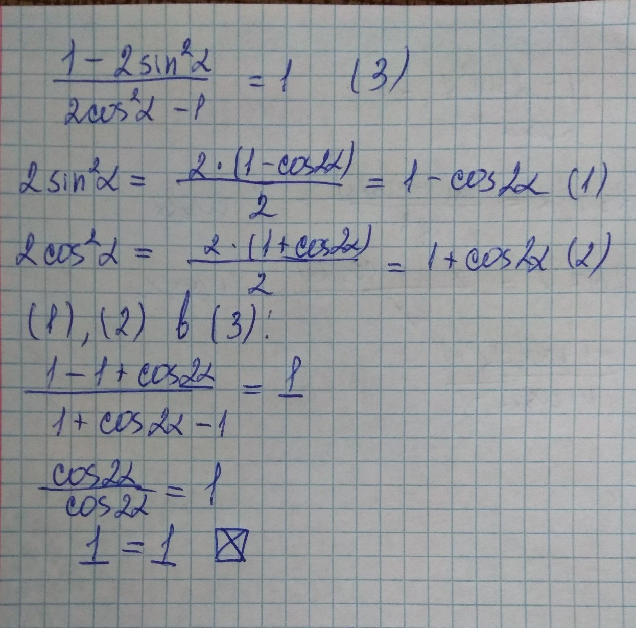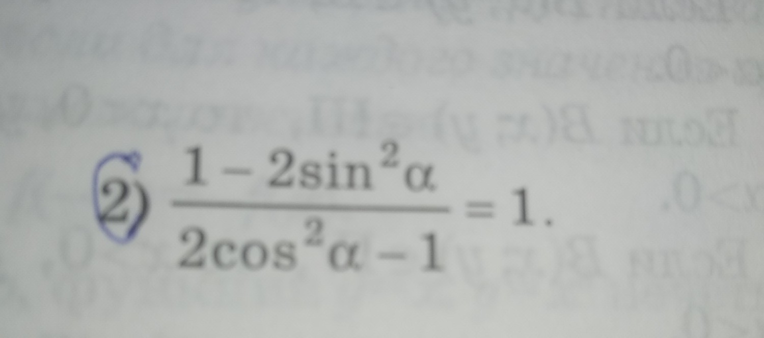 (cos^2a+sin^2a-2sin^2a) / (2cos^2-cos^2a-sin^2a)=(cos^2a-sin^2a) / (cos^2a-sin^2a)=1