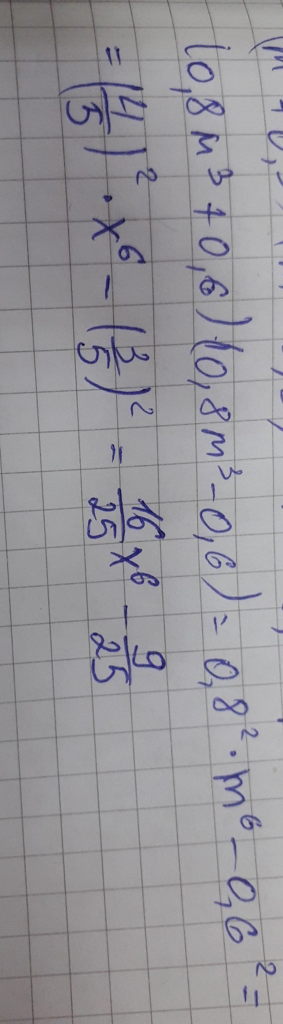 Представьте в виде многочлена выражение: (0,8m³+0,6)×(0,8m³-0,6)