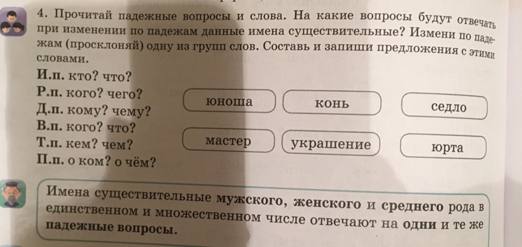 П.п О ком? О юноше, о коне; О чем? о седле.