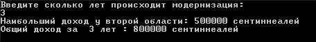 printf("Наибольший доход у второй области: %2d сентиннеалейn", obl2);