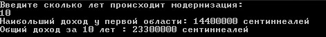 printf("Наибольший доход у первой области: %2d сентиннеалейn", obl1);