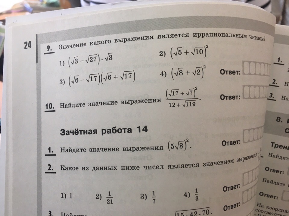 в 10 складыыаешь 17+7+2корня из 119 /12корней из 119=24+2корня из 119/12+корень из 119=2(12+корень из 119)/12+корень из 119=2.так как (12+корень из 119 сокращаются)