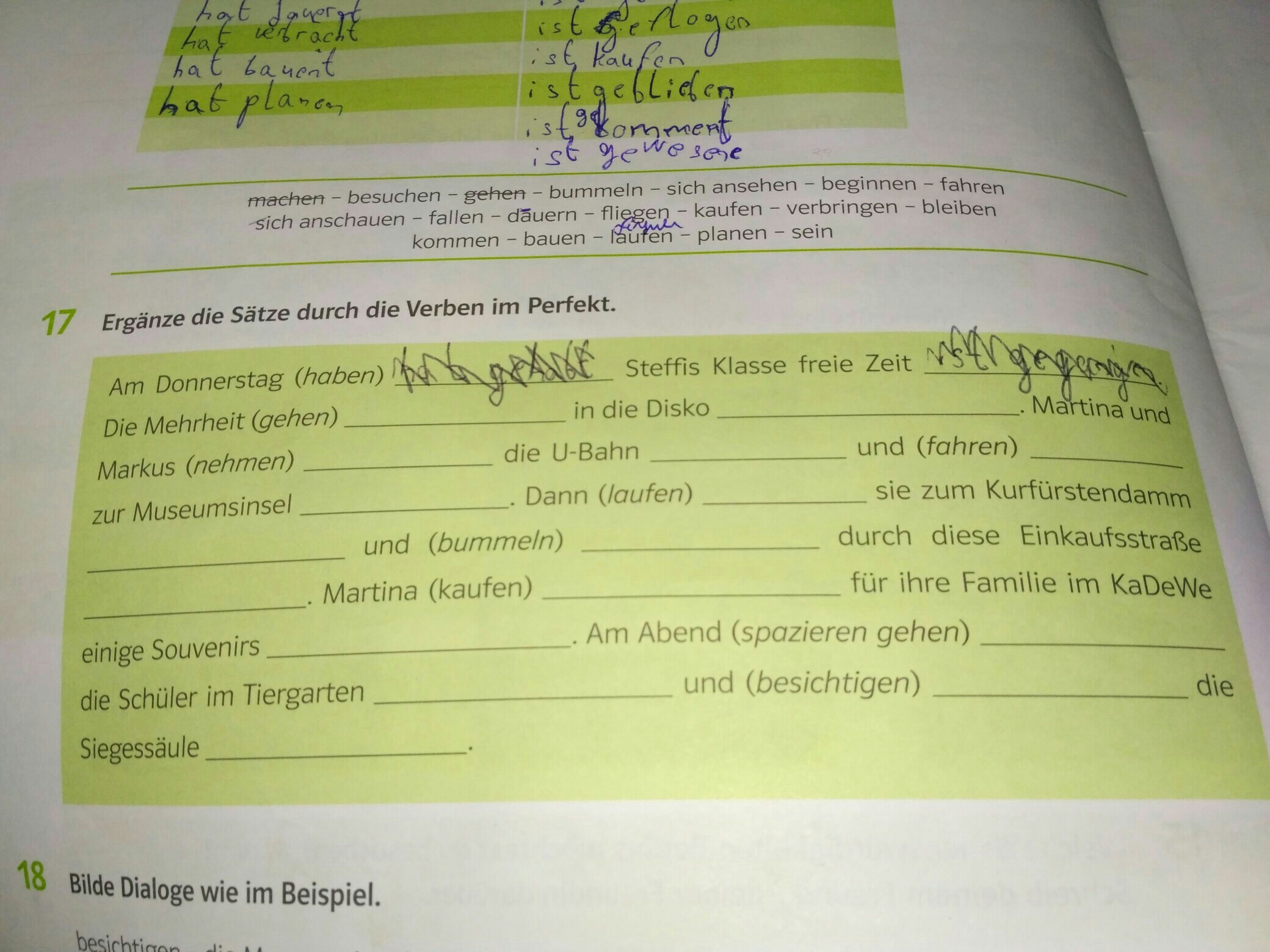 Am Abend sind ... spazieren gegangen ...haben ... besichtigt.