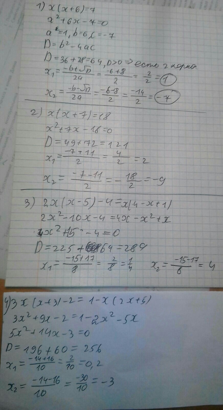 если что формула дискриминанта (D=b в квадрате минус 4ac), x1= -b+√D/2a x2= -b-√D/2a