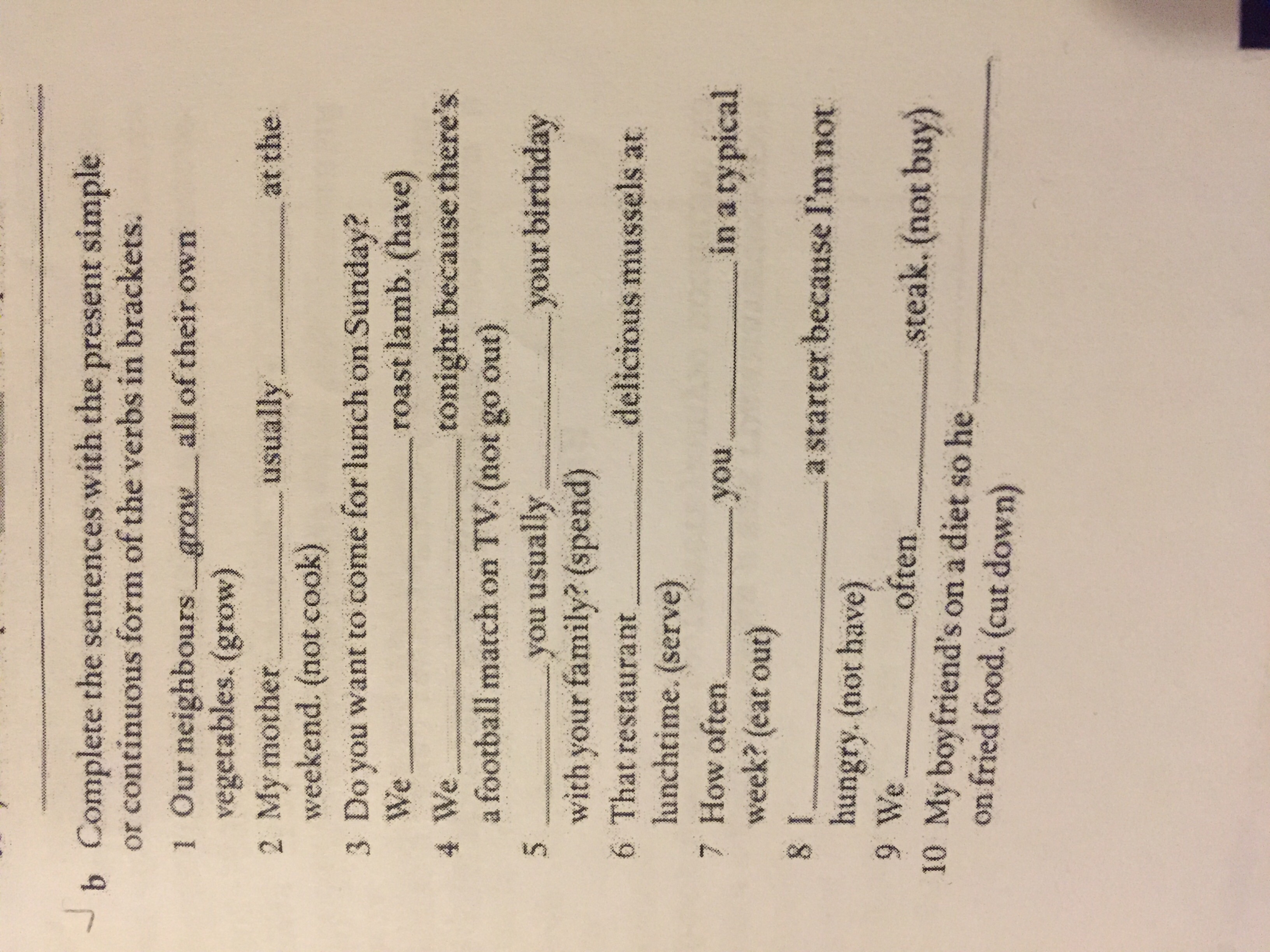 Complete the sentences with the present simple or continuous form of the verbs in brackets.