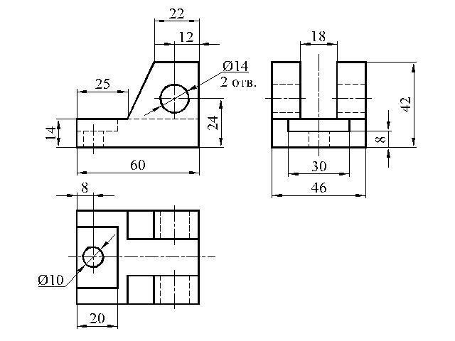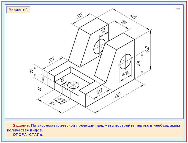 По аксонометричнской проекции предмета постройте чертеж в необходимом количестве видом.