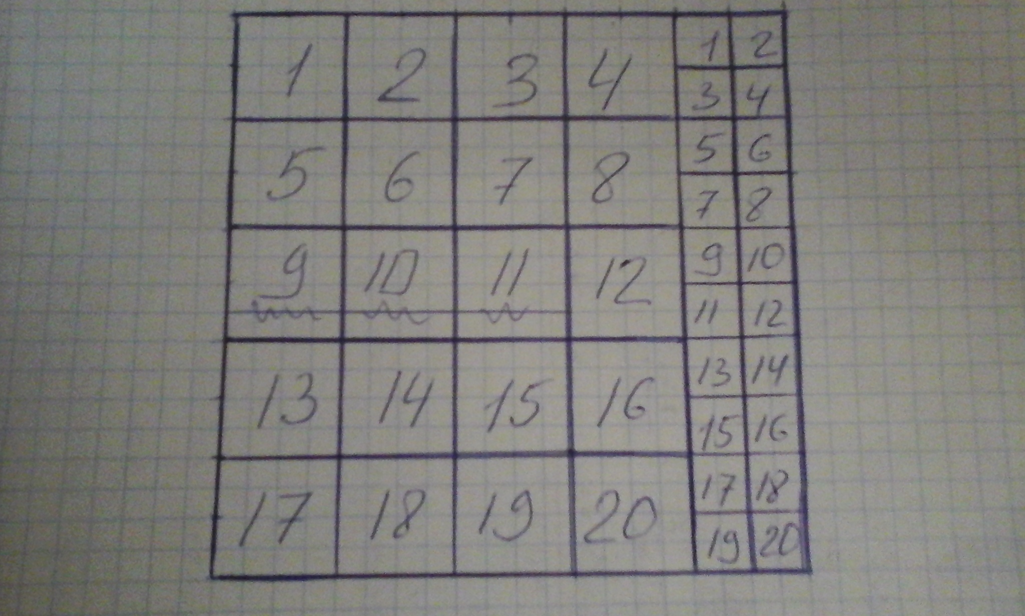 на 20 квадратов размеров 0,5х0,5 см