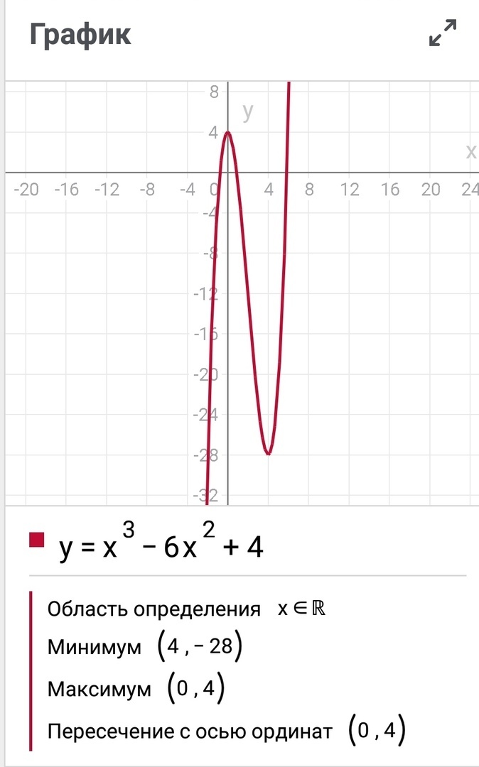 помогите пожалуйста! исследуйте функцию и постройте ее график y=x^3-6x^2+4