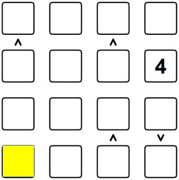 Заполните клетки числами 1, 2, 3, 4, учитывая знаки неравенства так, чтобы в каждой строке и в каждом столбце каждое число было записано один раз. Какое число будет записано в жёлтой клетке?