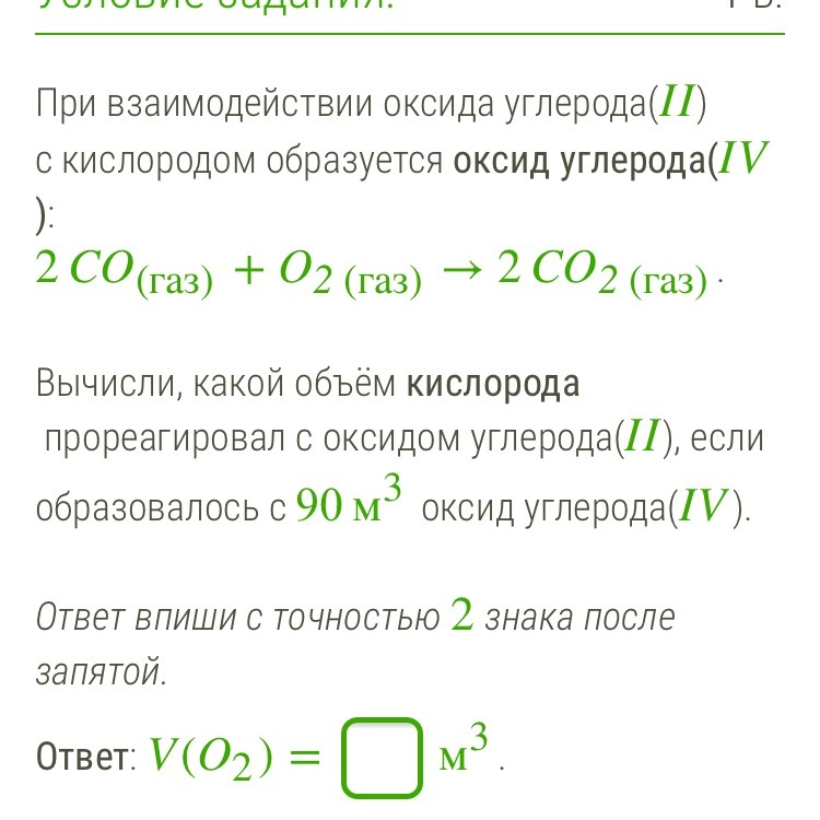 4. Ответ: потребуется 44,8м³ кислорода,чтобы получить оксид углерода(IV) объемом 90м³.