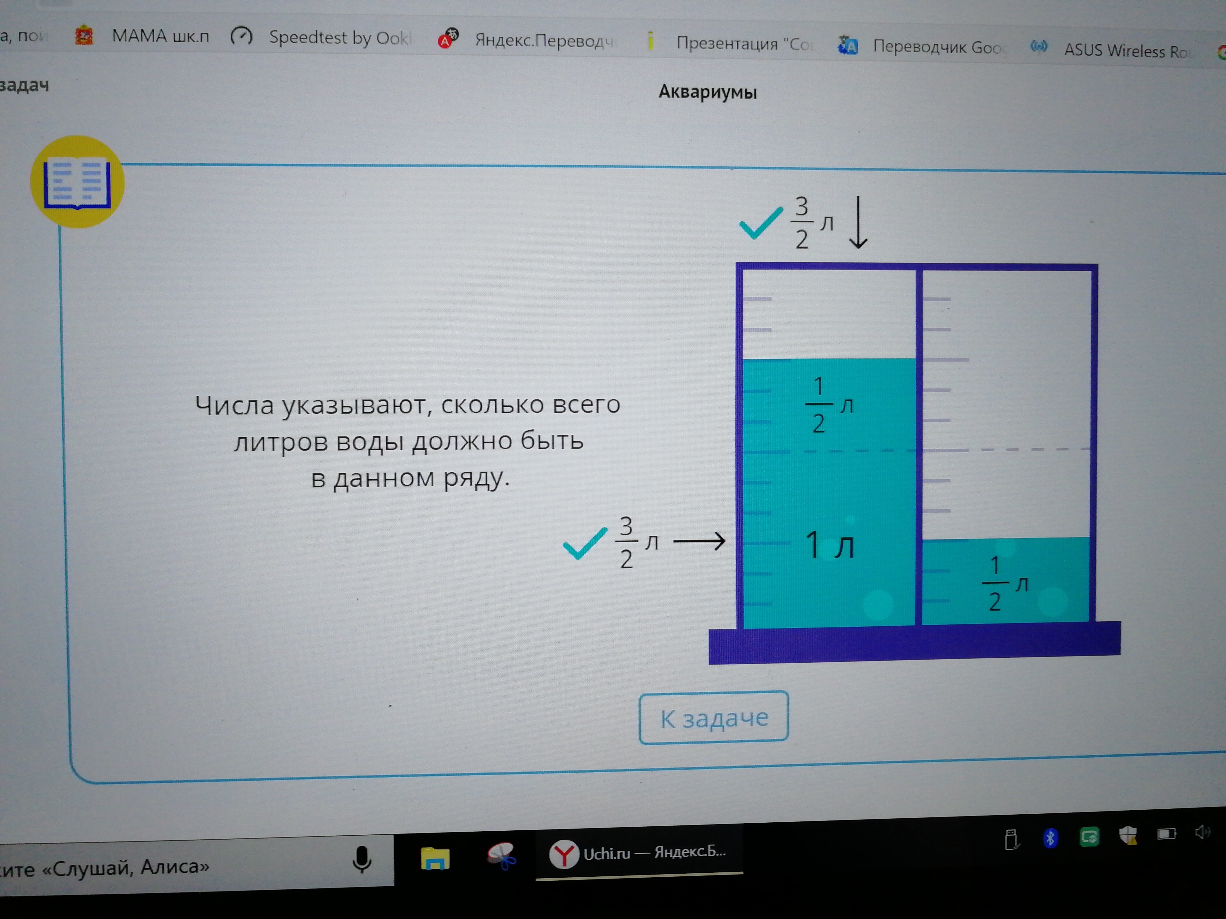 Нужно заполнить аквариумы водой, так, что бы в НУЖНОМ РЯДУ БЫЛО УКАЗАННОЕ КОЛ-ВО Воды, 1 картинка пример, 2 задание