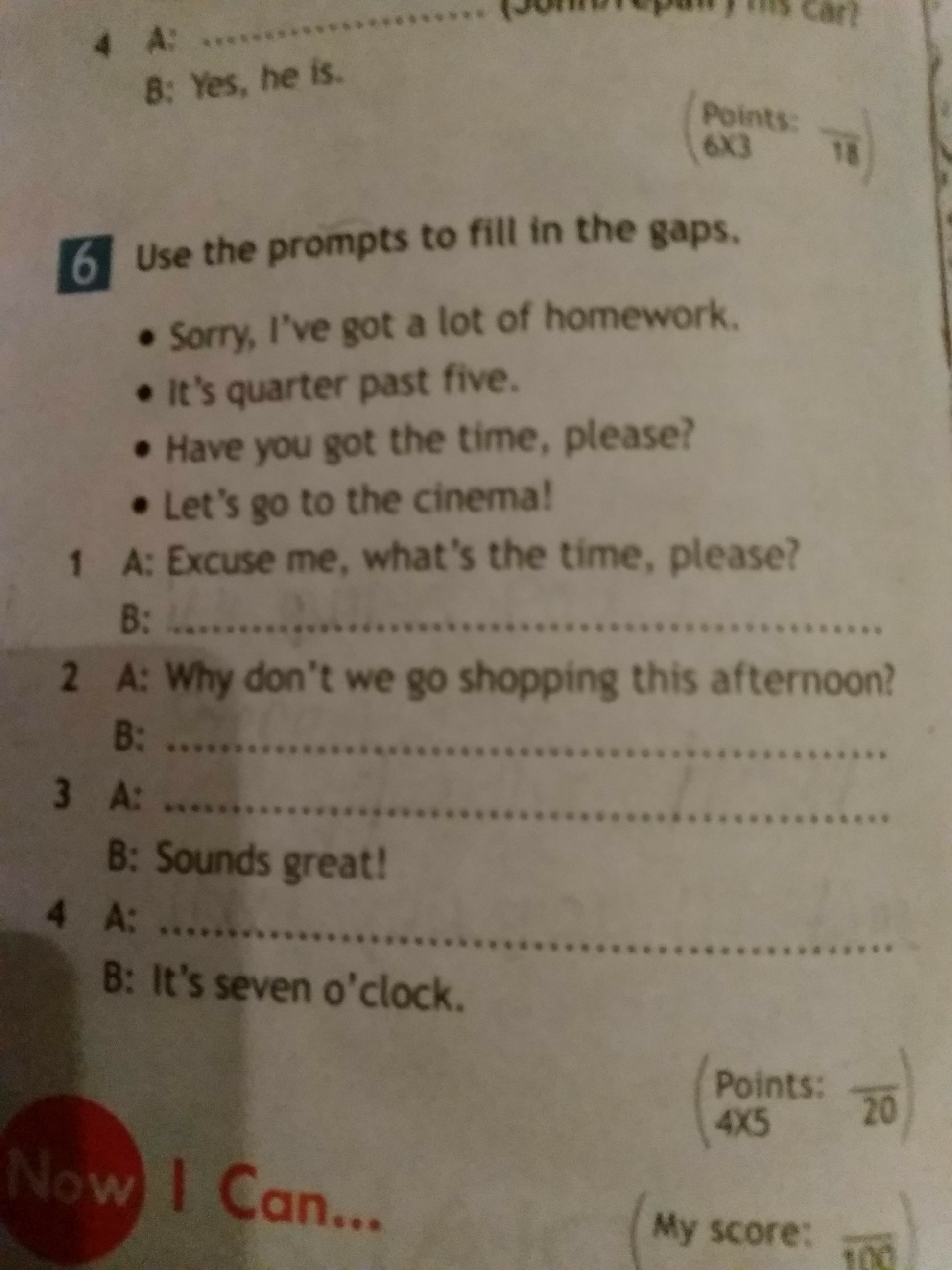 4)A:Have you got the time, please?