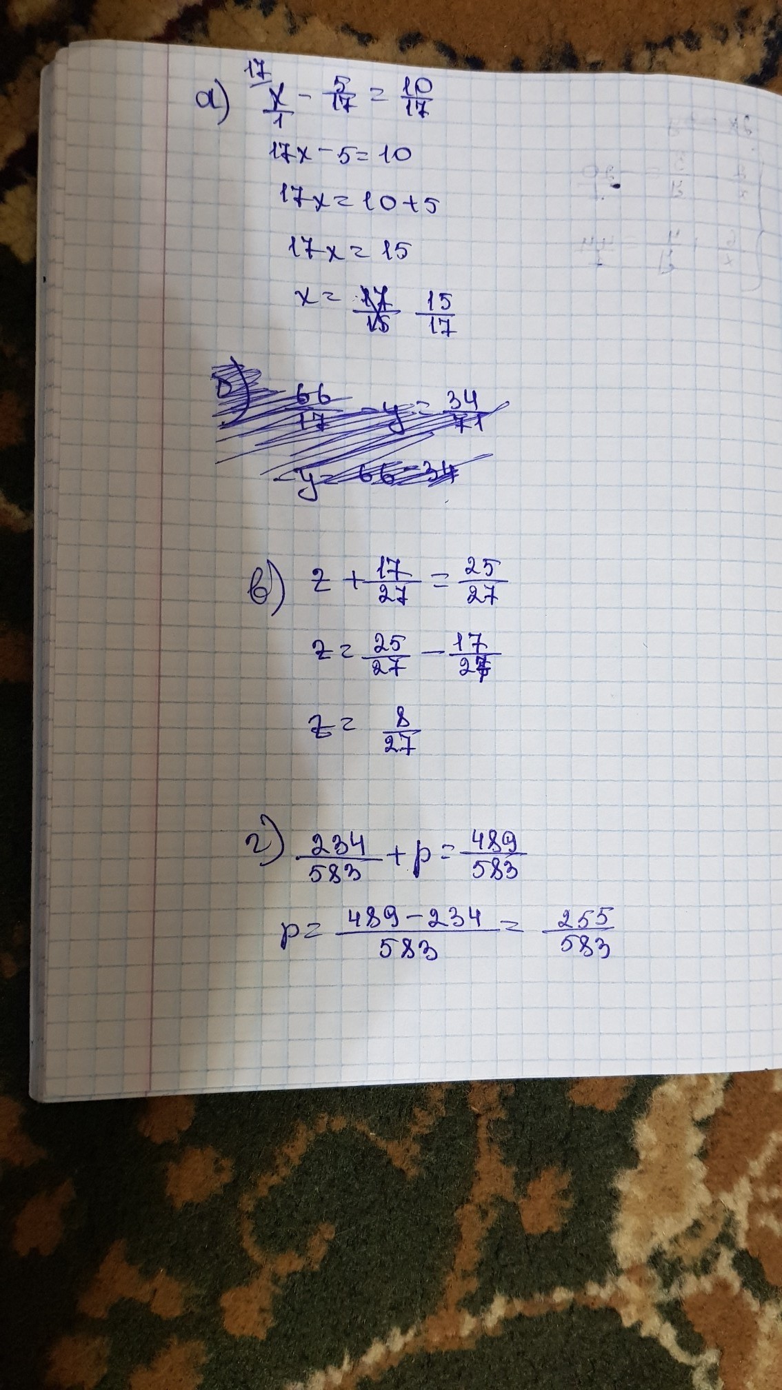 x=5/17+10/17 Знаменатели одинаковые , складываем