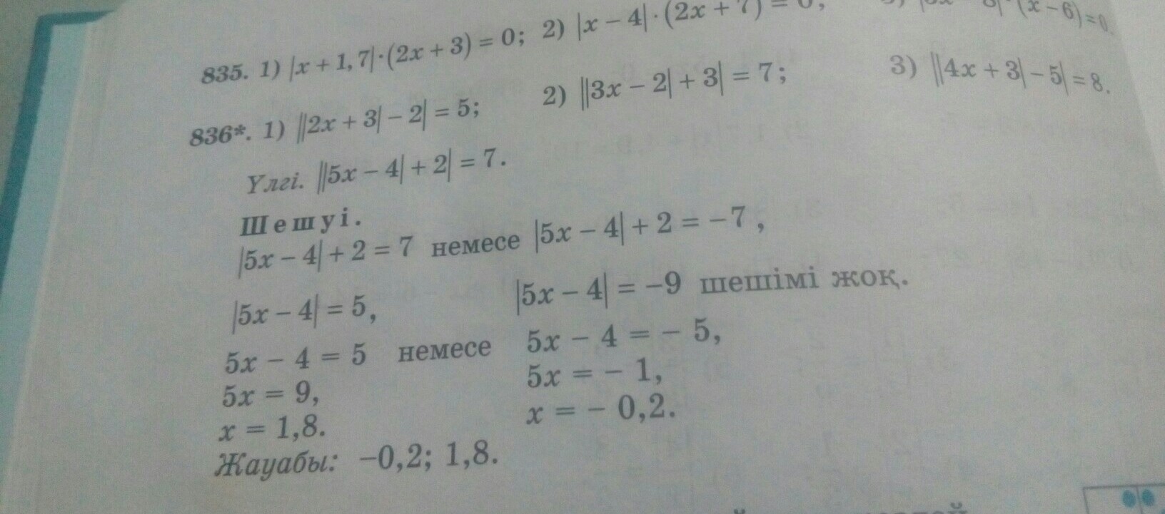 уравнение как решить двумя способами номер 836 ответы 1) -5 и 2 ;2) -23 и 2; 3)-4 и 2,5 образец показано внизу