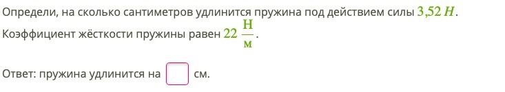 ∆x = F/k = 3,52/22 = 0,16 м = 16 см.