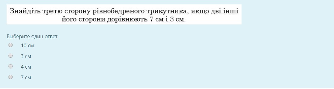2. 7 см (так как сумма любых двух сторон треугольника должна быть больше оставшейся стороны и так как треугольник равнобедренный) (если вам понравится моё решение, можно лучший ответ?)