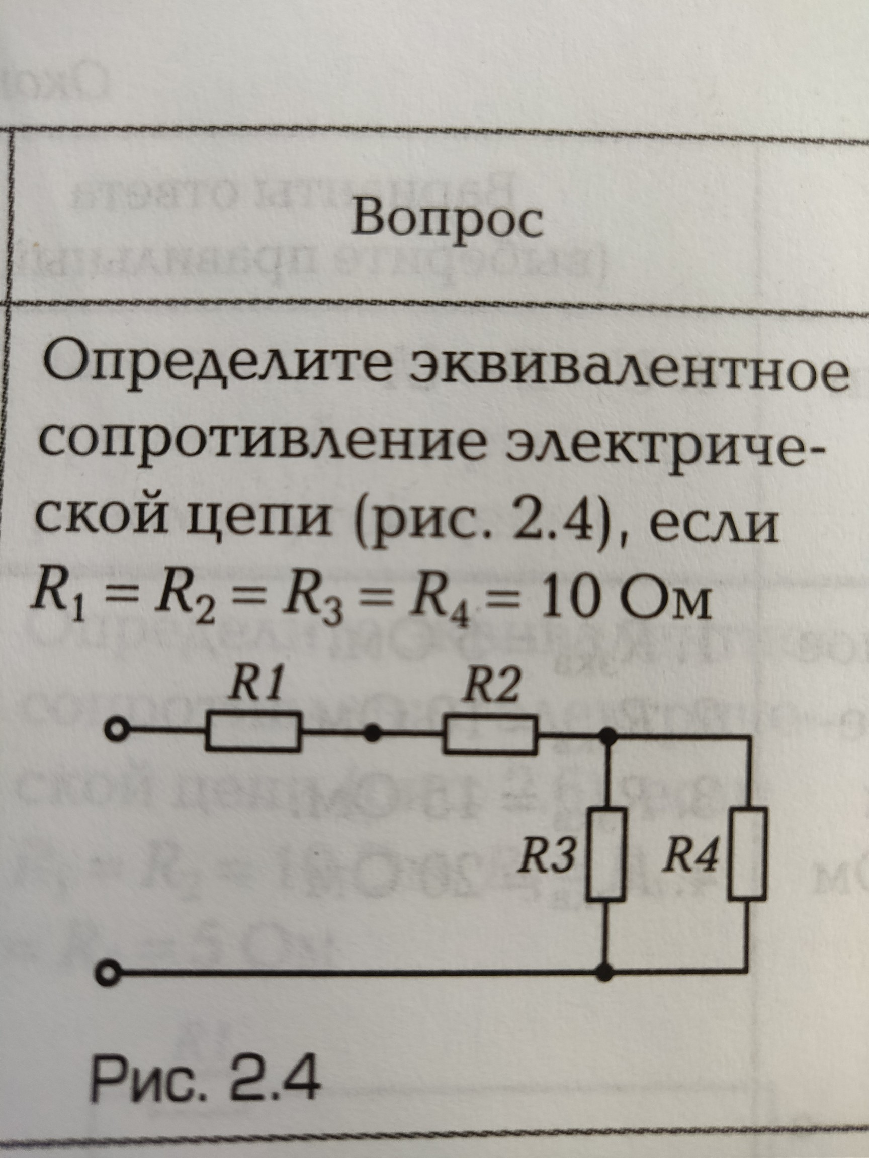 R34=R3*R4/(R3+R4)=10*10/(10+10)=5 Ом