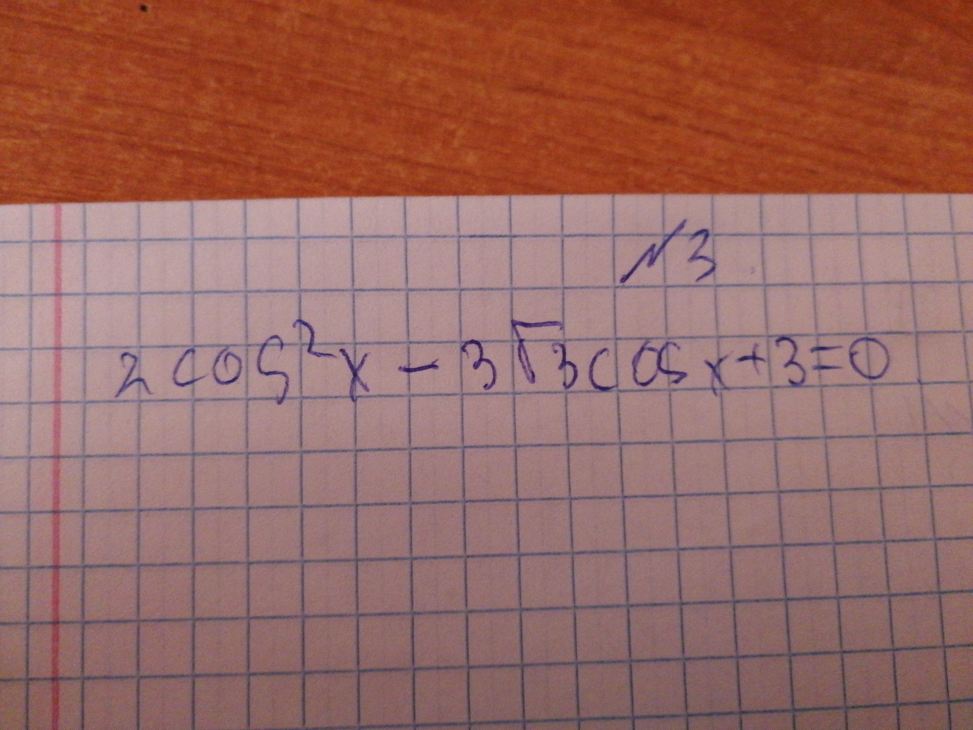 cos x=t\2t^2-3sqrt{3} t+3=0\D=3\t_1=sqrt{3} , \cos x=sqrt{3}, \xin varnothing \</p><p>t_2=frac{sqrt{3} }{2} \x=pm frac{pi }{6} +2pi k