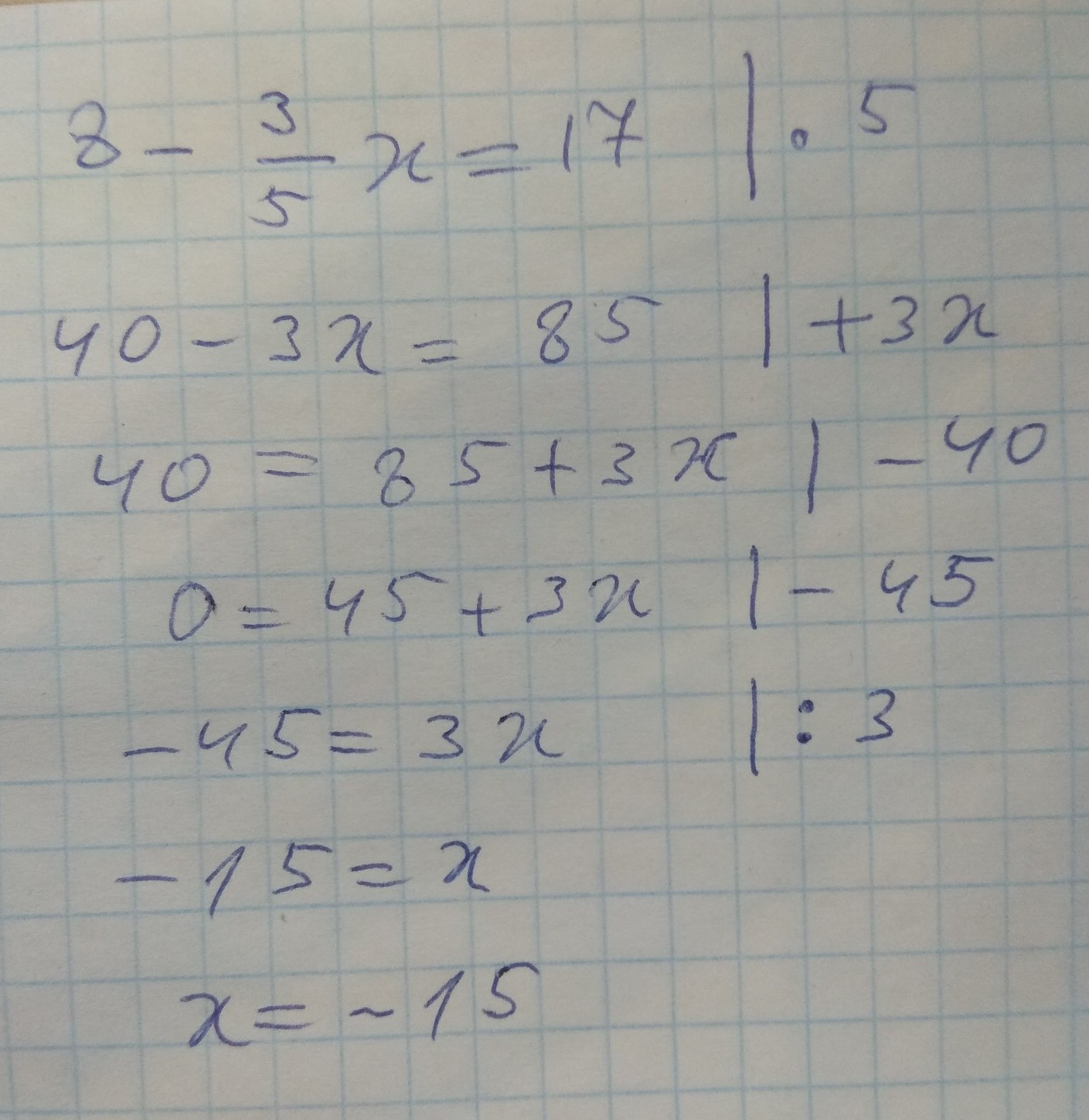 1) -3/5х = 17 - 8 = 9 - выделили член с Х.