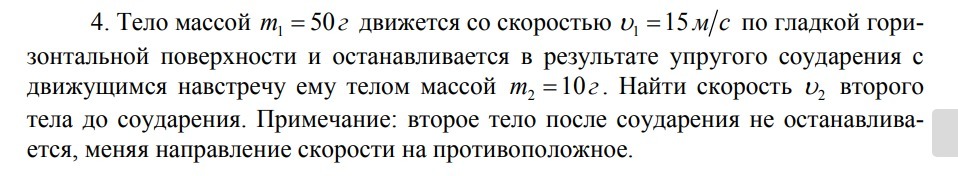 m1*v1 - m2*v2 = m2*v (v - скорость второго тела после упругого соударения), или, разделив обе части на массу второго тела: