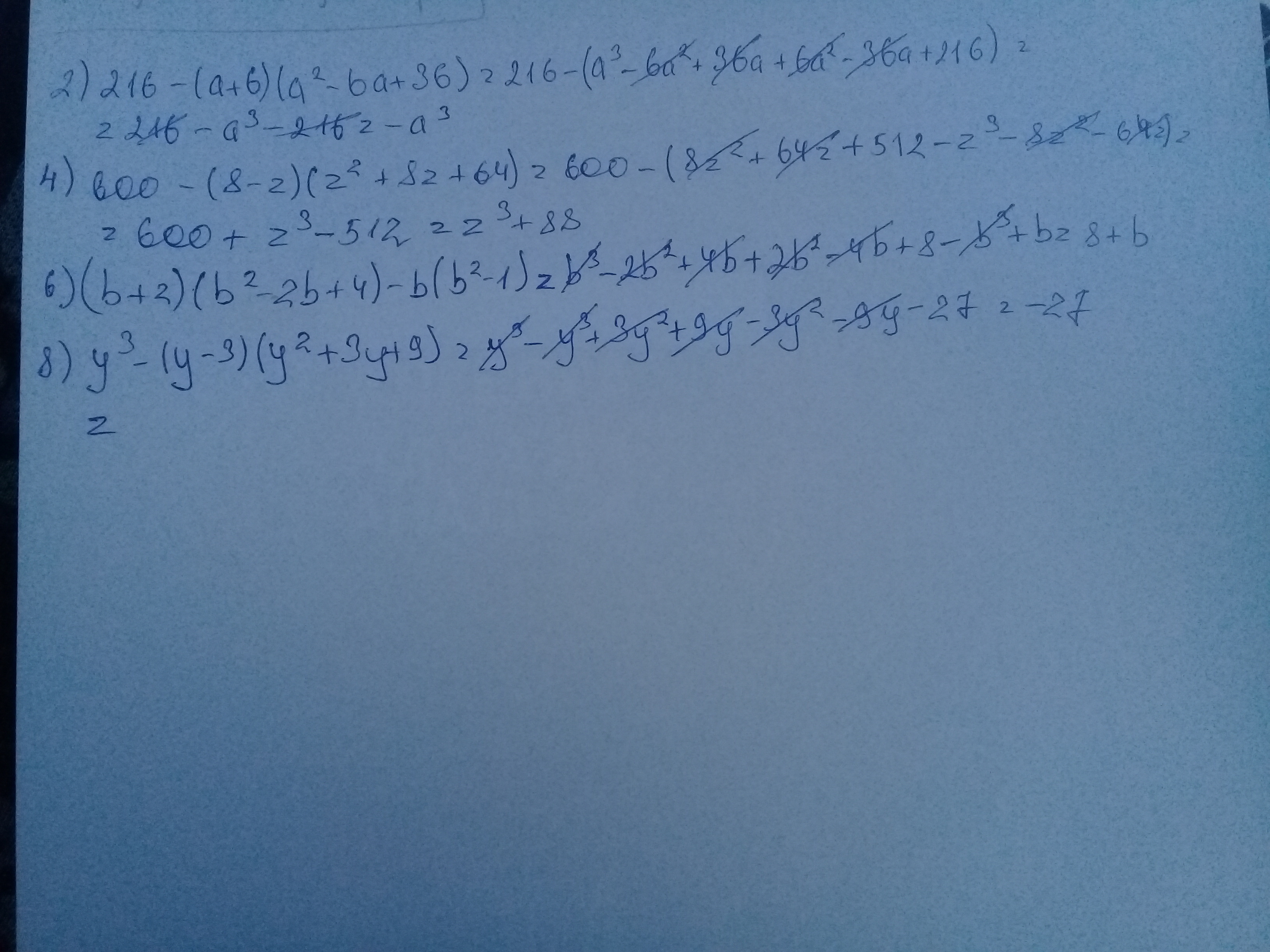 2) 216-(а+6)(а^2-6а+36)