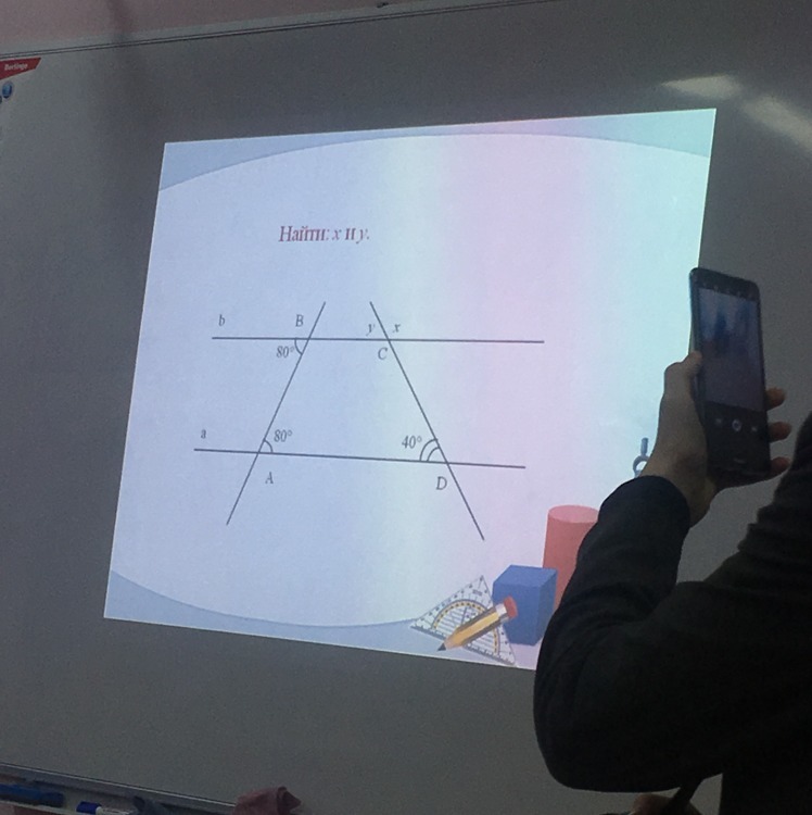 т.к.угол 80° и угол 80° равны , а они накрест лежащие , значит а параллельно b , значит угол справа от С будет тоже 40° , значит х = 180-40=140 ,а у= 180 - 140=40