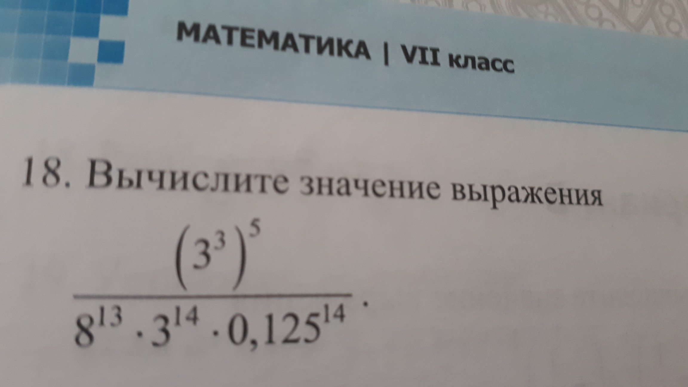 frac{( { {3}^{3} )}^{5}  }{ {8}^{13}  times  {3}^{14}  times  {0,125}^{14} }  =  frac{ {3}^{15} }{ {( {2}^{3} )}^{13} times  {3}^{14}  times  {( {2}^{ - 3} )}^{14} }  =  frac{ {3}^{15} }{ {2}^{39} times  {3}^{14}   times  {2}^{ - 42} }   =  frac{3}{ {2}^{39} times  {2}^{ - 42}  }  =  frac{3}{ {2}^{ - 3} } =  3 times  {2}^{3 }  = 3 times 8 = 24