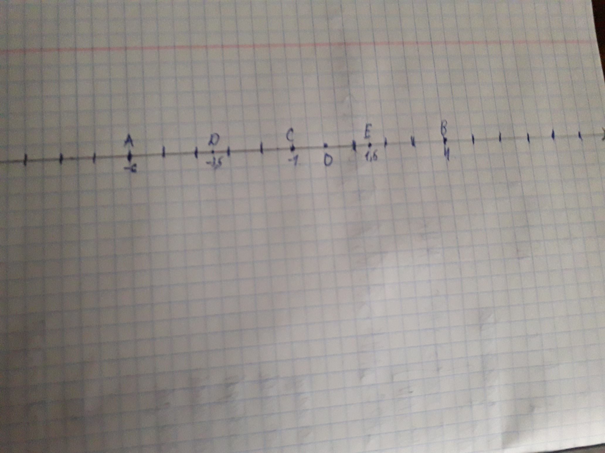 Отметьте на координатной прямой точку А(– 6), приняв за единичный отрезок длину двух клеток тетради. Отметьте на этой прямой точки В, С, D и Е, если В правее А на 20 клеток, С – середина отрезка АВ, точка D левее точки С на 5 клеток и Е правее точки D на 10 клеток. Найдите координаты точек В, С, D и Е.