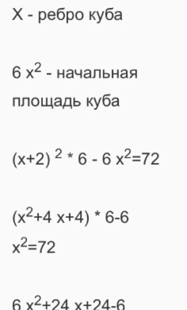 Если каждое ребро куба увеличить на 2, то площадь его полной поверхности увеличится на 72. Чему равно ребро куба? В ответе запишите число.