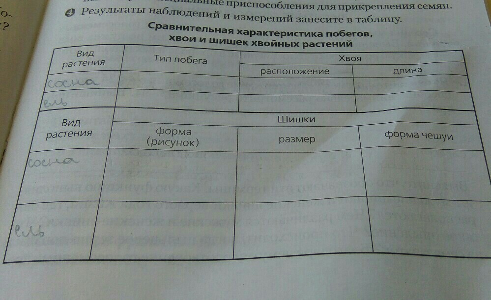 скажи пожалуйста тип побега сосны и ели. Размер шишки сосны. Форму чешуи сосны и ели.
