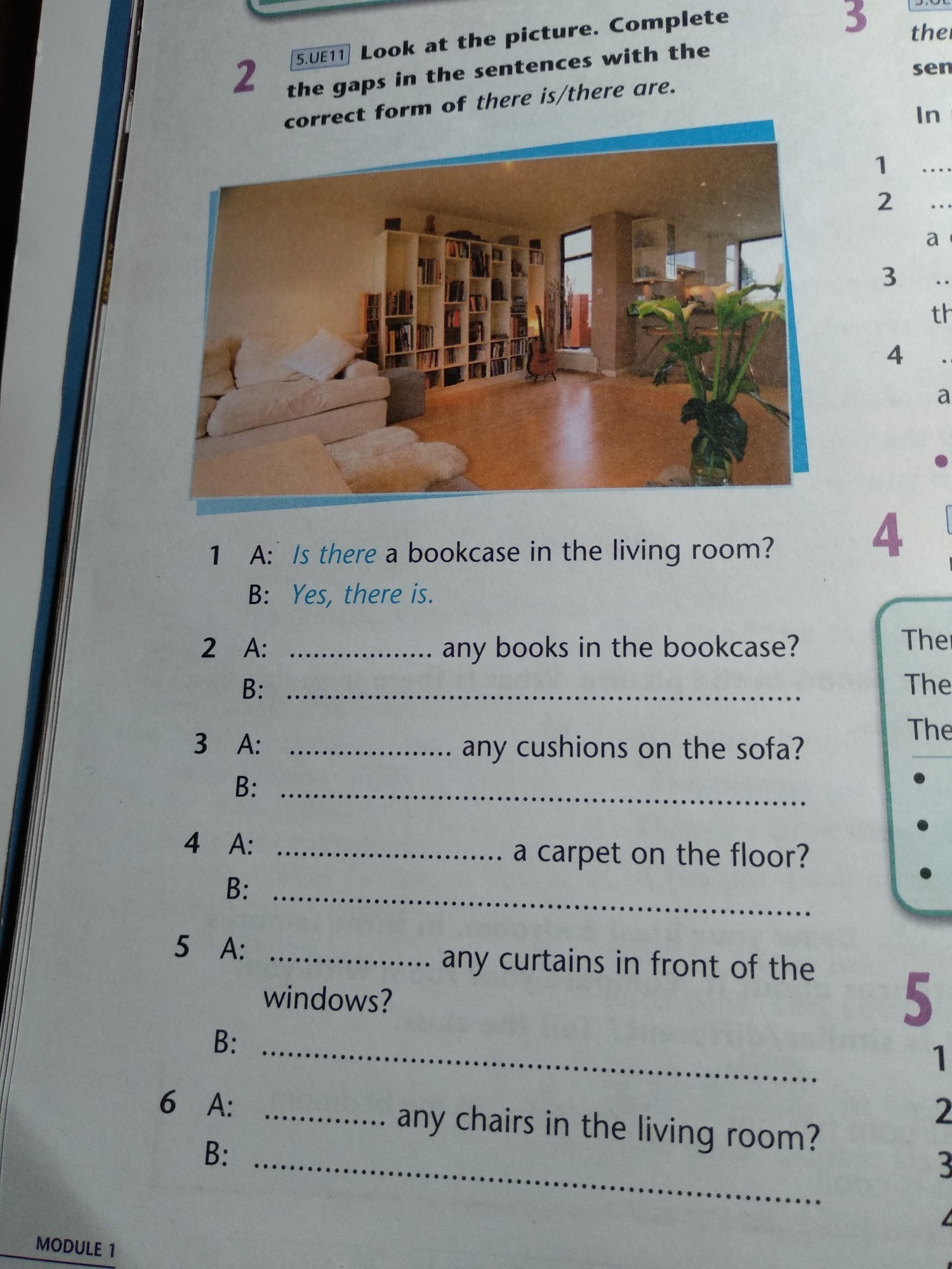 B:Yes,there are(она вроде под диваном есть,если что можно и No,there isn't поставить)
