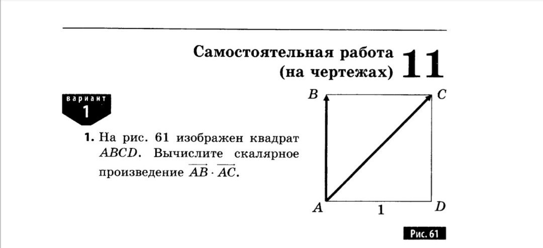 равно |AB|*|AC|*cos∠BAC=1*(√2)*cos45°=1*(√2)*1/√2=1