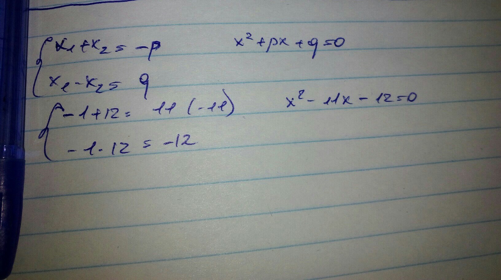 - p = x₁ + x₂ = - 1 + 12 = 11