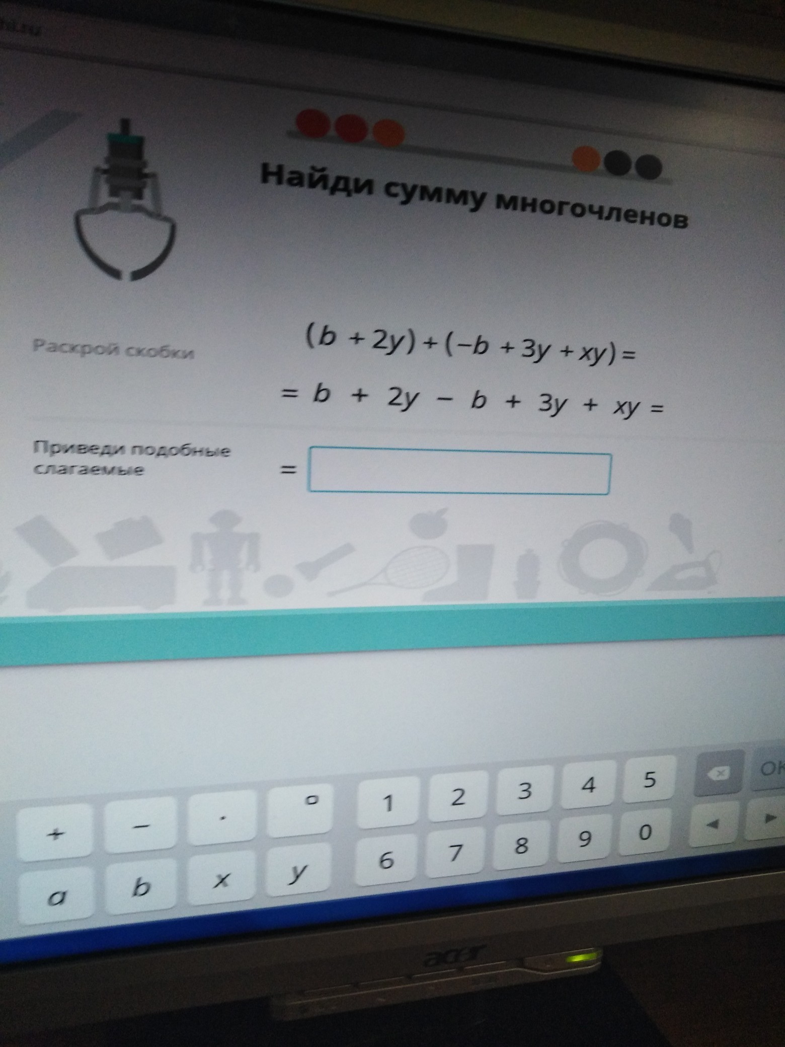b + 2y - b + 3y +xy = 2y+3y +xy (b взаимоуничтожаются) = 5y + xy