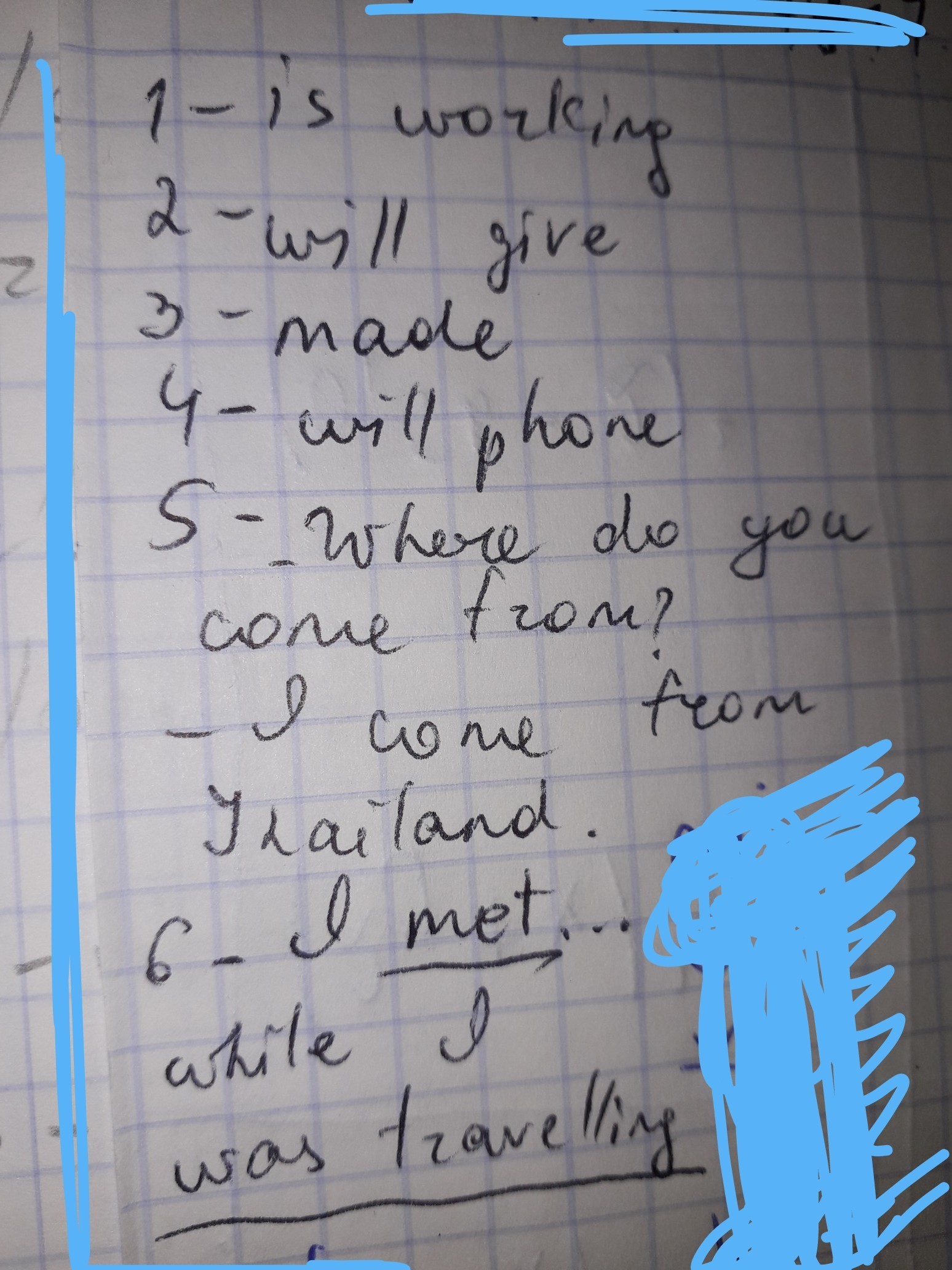 5. Where do/are you come/coming from? - I come/am coming from Thai-