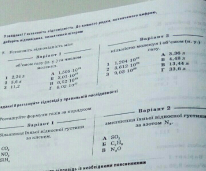 Установіть відповідність між кількістю молекул і обємом (н.у) газу