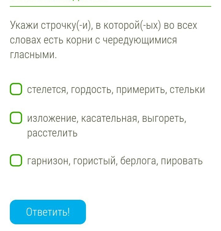 Гар/Гор, Кас/Кос/, Лож/Лаг, Стел/Стил.