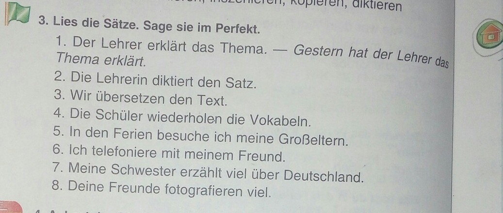2. Gestern hat die Lehrerin den Satz diktiert.