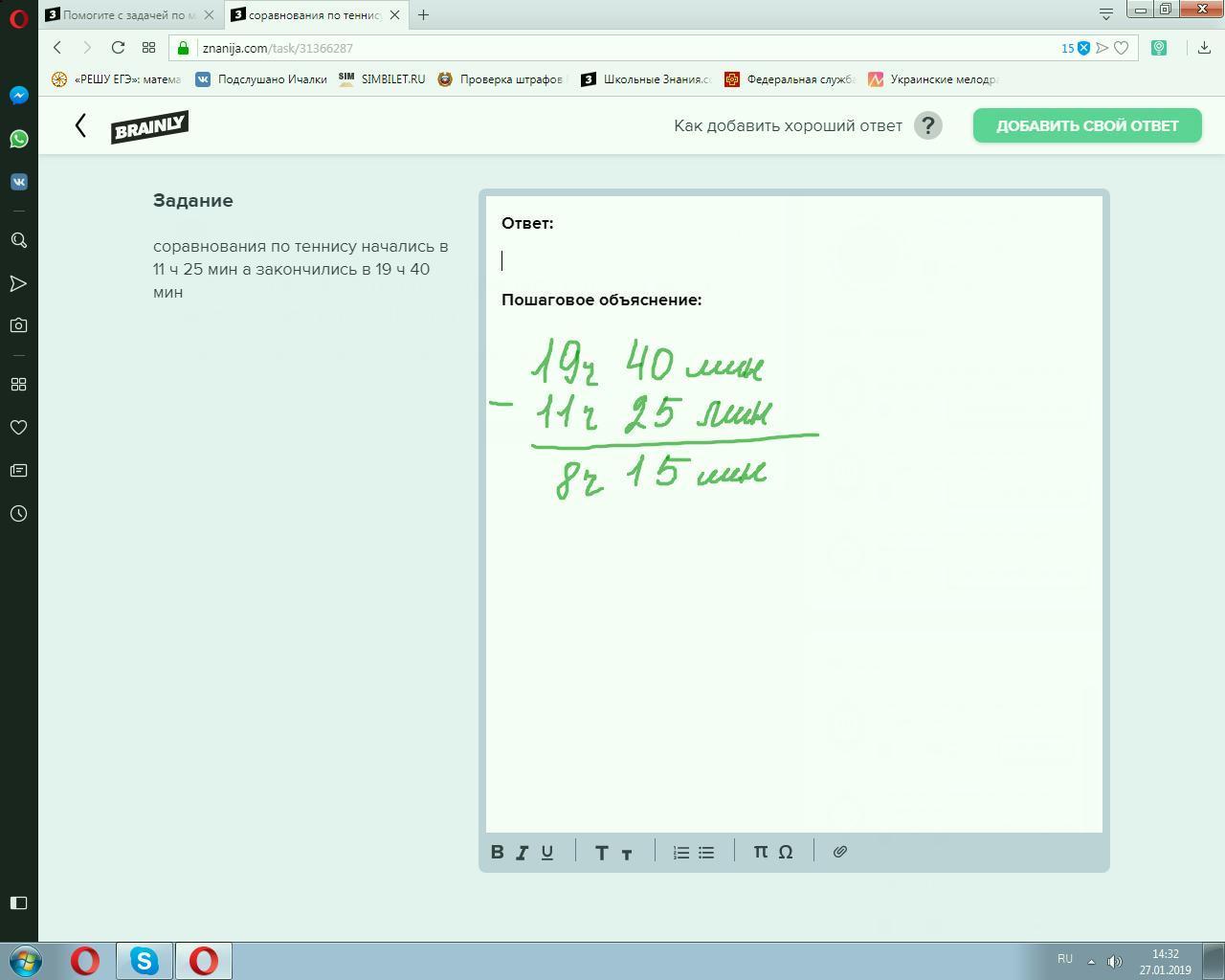 19ч 40 мин - 11ч 25мин = 8ч 15мин