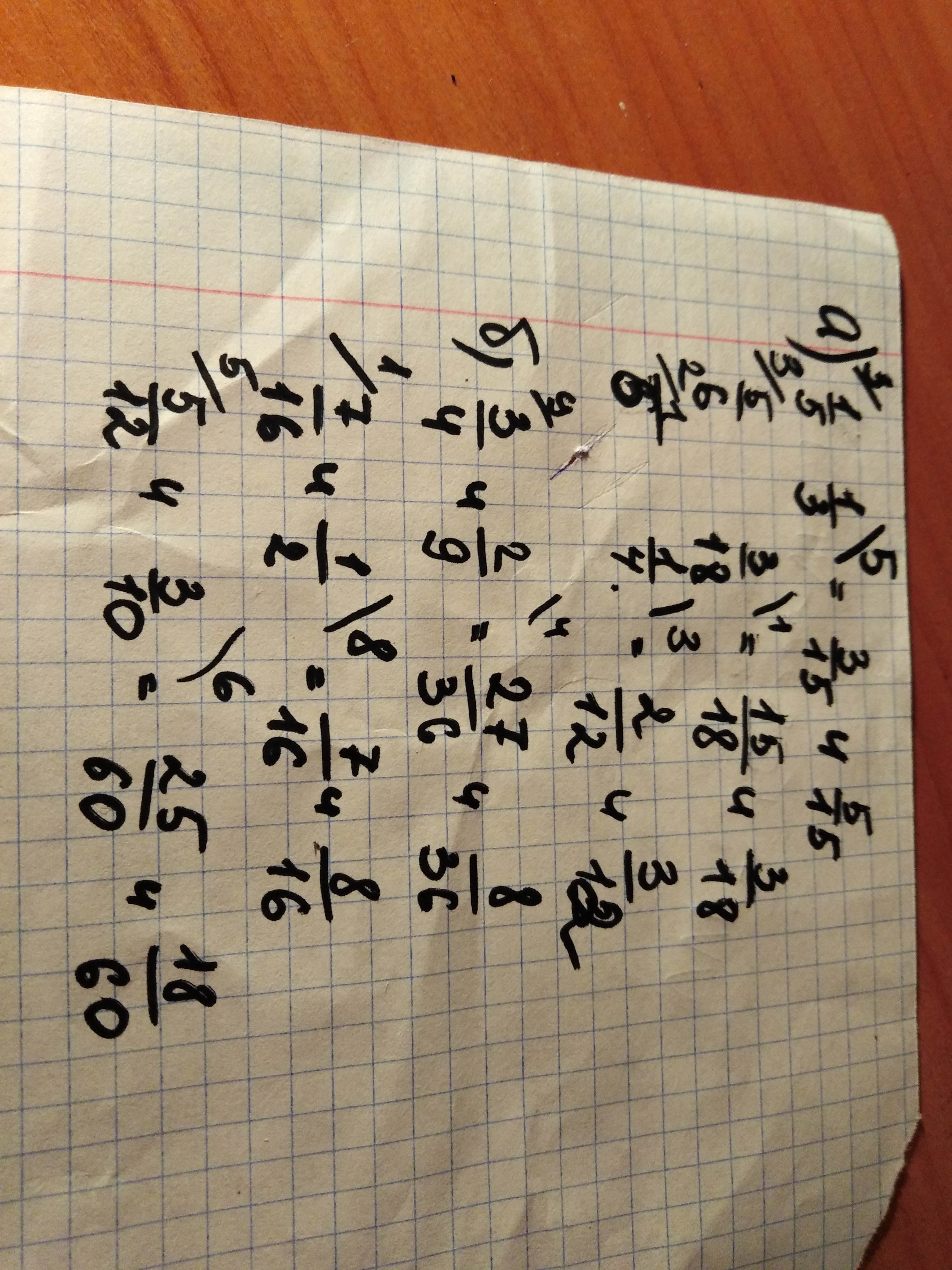 Приведите дроби к наименьшему общему знаменателю а) 1/5 и 1/3, 5/6 и 3/18, 1/6 и1/4, б) 3/4 и2/9, 7/16 и,1/2, 5/12 и 3/10