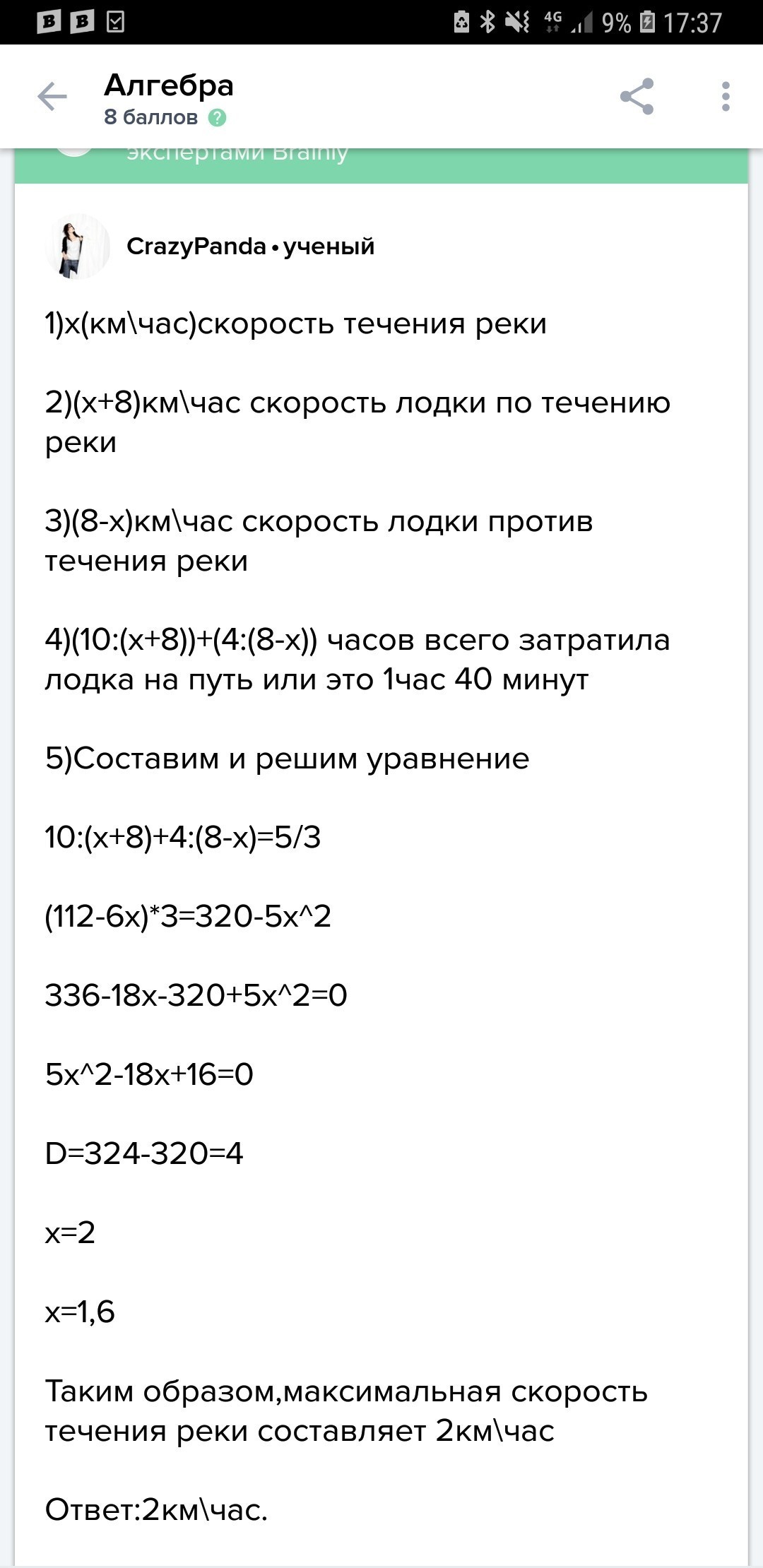 Розв’язавши рівняння отримаємо х - швидкість лодки