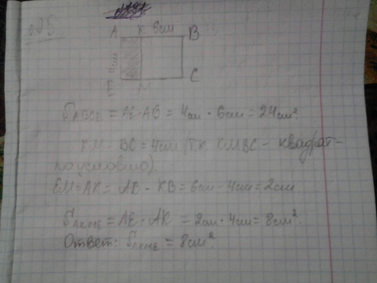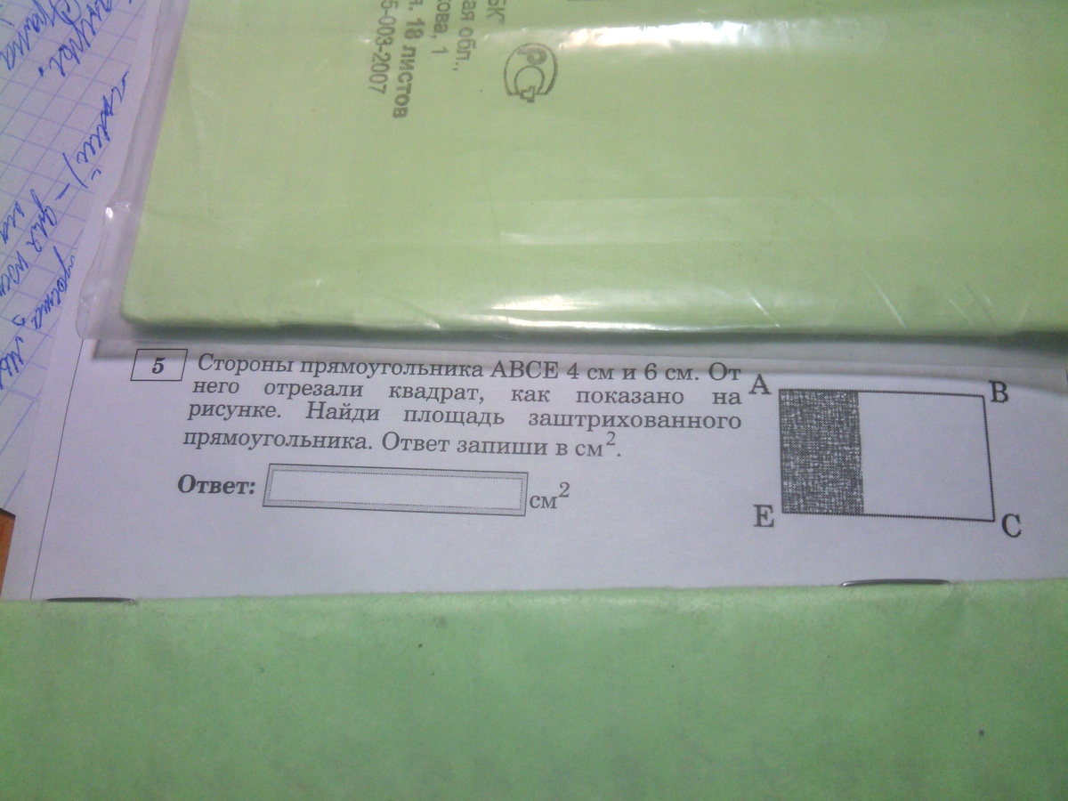 Если отрезали квадрат, то сторона квадрата =4 см.Остаётся прямоугольник со сторонами 2 см и 4 см. Его площадь равна 2*4=8 (кв.см)