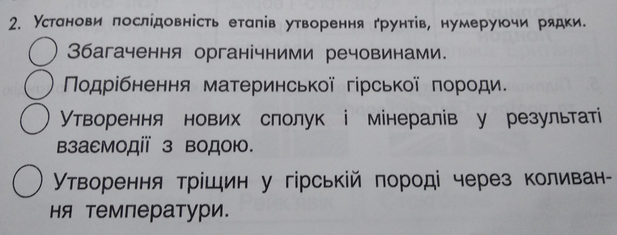 1 утворення тріщин,2порібнення, 3 утворення нових сполук,4збагачення