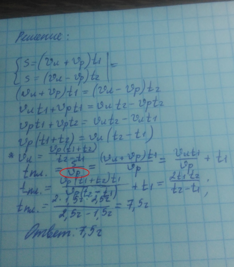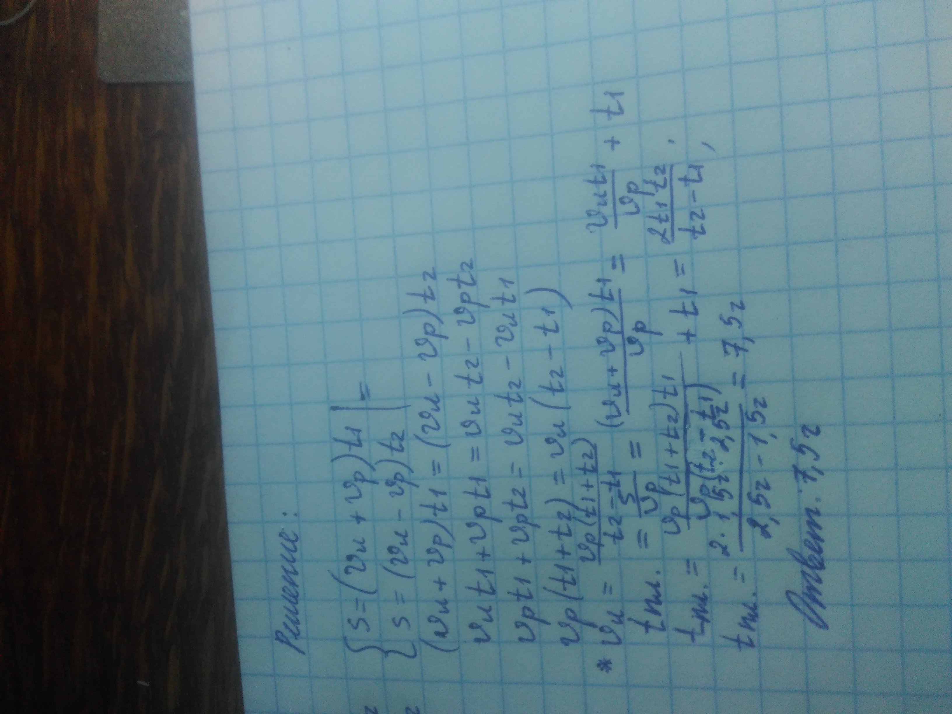 t = S/Vл = (Vл+Vр)*t1/Vл = Vр*t1/Vл + t1