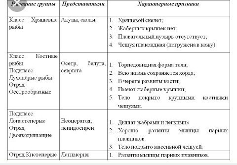 Помогите сделать таблицу по биологии. Тема: "Группы рыб".