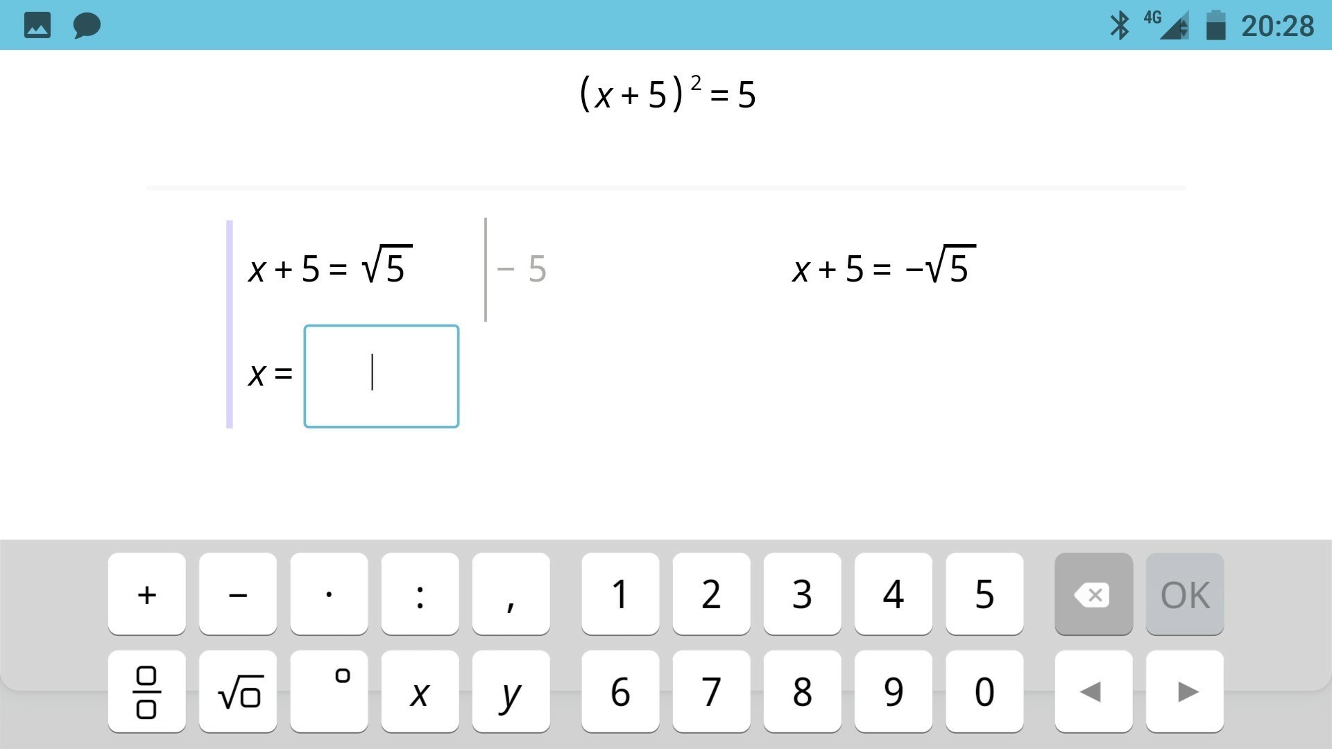 х=корень из 5 минус 5,дальше,кажись,не считается