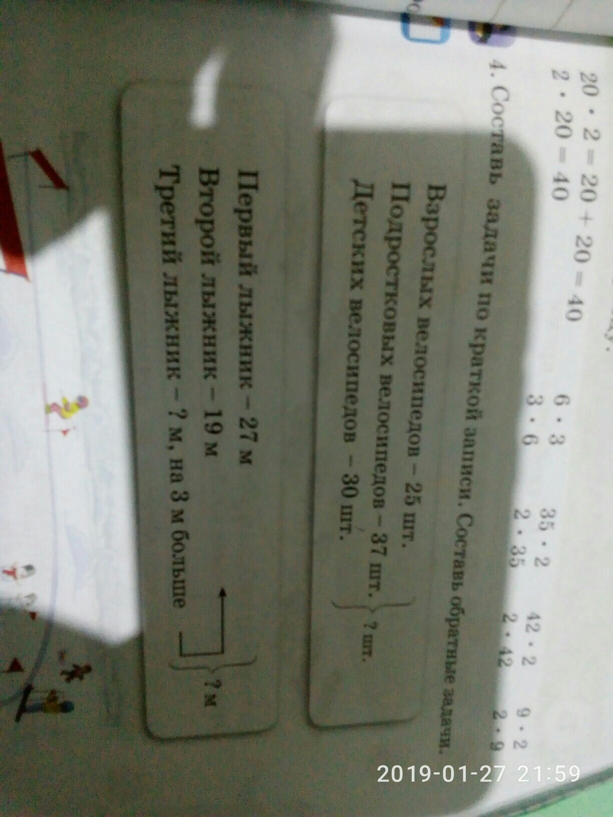 первый лыжник 27м второй лыжник 19м третийлыжник 22м