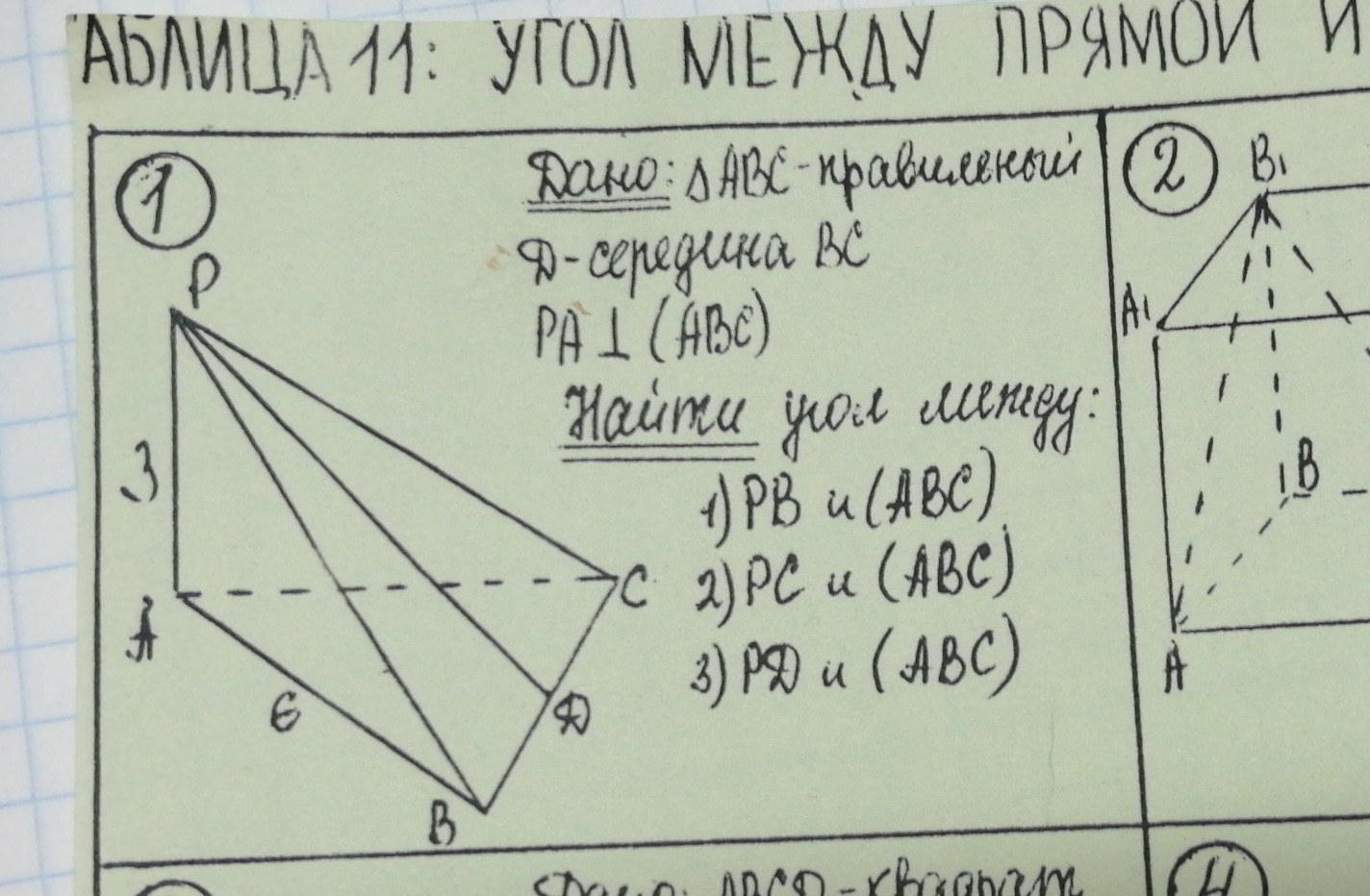 Таким образом раз уж PA ⊥ (ABC), то AB, AD, AC это проекции PB, PD, PC соответственно.