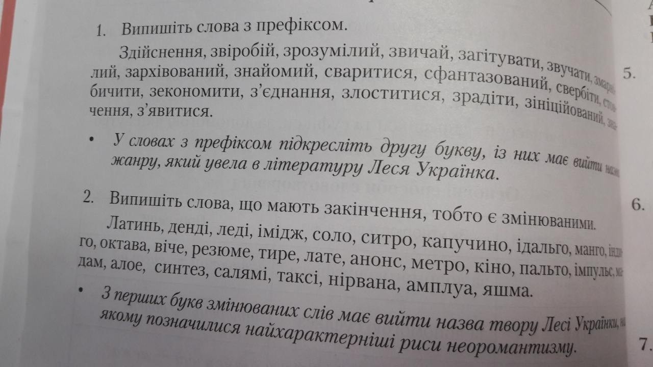2. Латинь, імідж, ситро, октава , віче , анонс, пальто, імпульс, синтез, нірвана , яшма. (Лісова пісня)