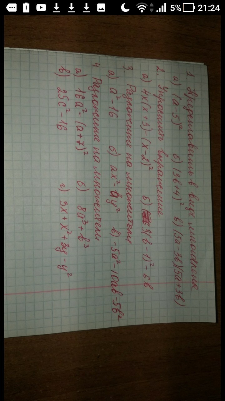 a) a^2 - 10a +25 б) 9b^2 +24b+16 в) 25a^2 - 9b^2